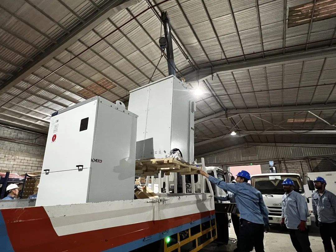 “我們要趁著太陽(yáng)還沒(méi)升起,盡可能把今天的施工進(jìn)度往前趕。”今年49歲的蔡永平是中國(guó)電力技術(shù)裝備有限公司沙特分公司總經(jīng)理,也是沙特?cái)?shù)字化智能環(huán)網(wǎng)柜項(xiàng)目負(fù)責(zé)人。此刻,他正與當(dāng)?shù)胤职添?xiàng)目總監(jiān)扎卡里亞確認(rèn)當(dāng)天的施工計(jì)劃,確保每一支施工隊(duì)伍都能在倉(cāng)庫(kù)領(lǐng)到需要安裝的環(huán)網(wǎng)柜設(shè)備及配件。
