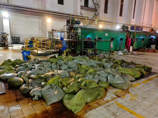 這幾天,電廠里日夜有技術(shù)人員24小時(shí)駐守,清理海蜇人員三班倒,每班8個(gè)小時(shí),每天都有四百袋至1千袋的海蜇被清理出廠。