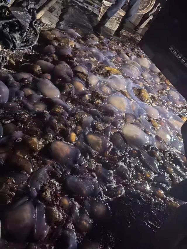 海蜇多到什么程度?9月18日到9月25日,已累計(jì)抓了約5250袋、21萬斤的海蜇。