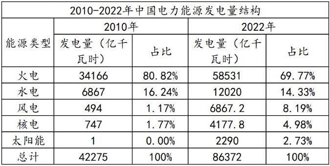 雖然當(dāng)前我國(guó)的電力能源結(jié)構(gòu)仍以火電為主,但是根據(jù)國(guó)家統(tǒng)計(jì)局?jǐn)?shù)據(jù),2022年火力發(fā)電量83886億千瓦時(shí),市場(chǎng)份額降至69.77%,歷史性跌破70%。其次,水電、風(fēng)電、核電、太陽(yáng)能的發(fā)電量占比分別為14.33%、8.19%、4.98%和2.73%。非化石能源發(fā)電量占比約為30%,可再生能源發(fā)電量為2.12萬(wàn)億千瓦時(shí)。目前的電力能源結(jié)構(gòu)距離規(guī)劃目標(biāo)仍有一段距離,要實(shí)現(xiàn)既定目標(biāo),從政策層面來(lái)看清潔能源依舊是政策所指,大勢(shì)所趨。