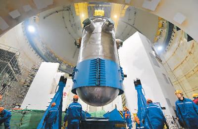 1月28日,華龍一號全球首堆、中核集團福清核電5號機組反應(yīng)堆壓力容器順利吊裝。林善傳攝(新華社發(fā))