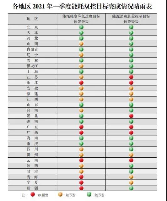 《各地區(qū)2021年一季度能耗雙控目標(biāo)完成情況晴雨表》的通知