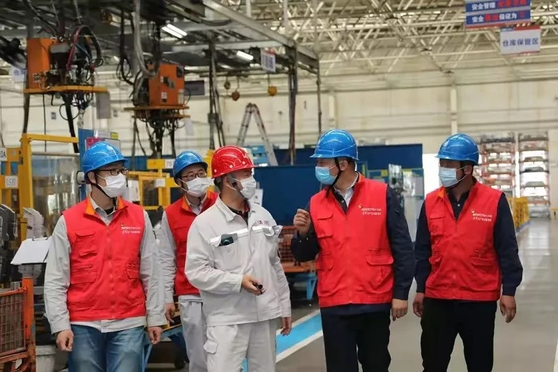 山東淄博供電公司員工了解企業(yè)用電需求,檢查企業(yè)生產(chǎn)車間用電安全