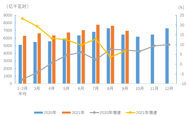 1-9月,全國(guó)全社會(huì)用電量61651億千瓦時(shí),同比增長(zhǎng)12.9%,其中,9月份全國(guó)全社會(huì)用電量6947億千瓦時(shí),同比增長(zhǎng)6.8%。