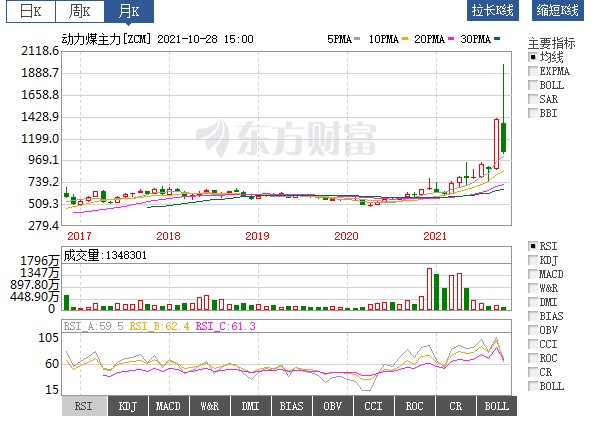 由K線圖上可知,煤價(jià)在今年4月突破了長(zhǎng)達(dá)若干年的大箱體,開始了瘋狂的上升之旅。從月線上看,如今一根長(zhǎng)上影線避雷針,從技術(shù)上來(lái)講,死翹翹了。