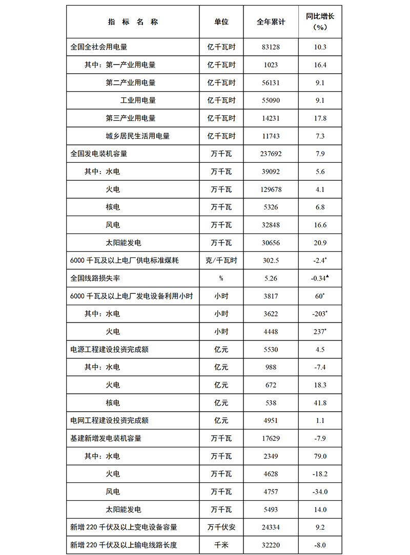 注:1.全社會(huì)用電量為全口徑數(shù)據(jù),全國(guó)供電量為調(diào)度口徑數(shù)據(jù)。2.“同比增長(zhǎng)”列中,標(biāo)*的指標(biāo)為絕對(duì)量;標(biāo)▲的指標(biāo)為百分點(diǎn)。