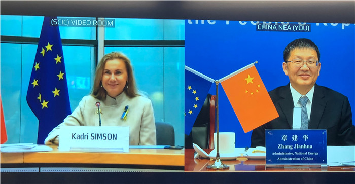 本網(wǎng)訊 3月31日,中國(guó)國(guó)家能源局局長(zhǎng)章建華在北京通過(guò)視頻形式與歐盟能源委員西姆森共同主持召開第十次中歐能源對(duì)話。