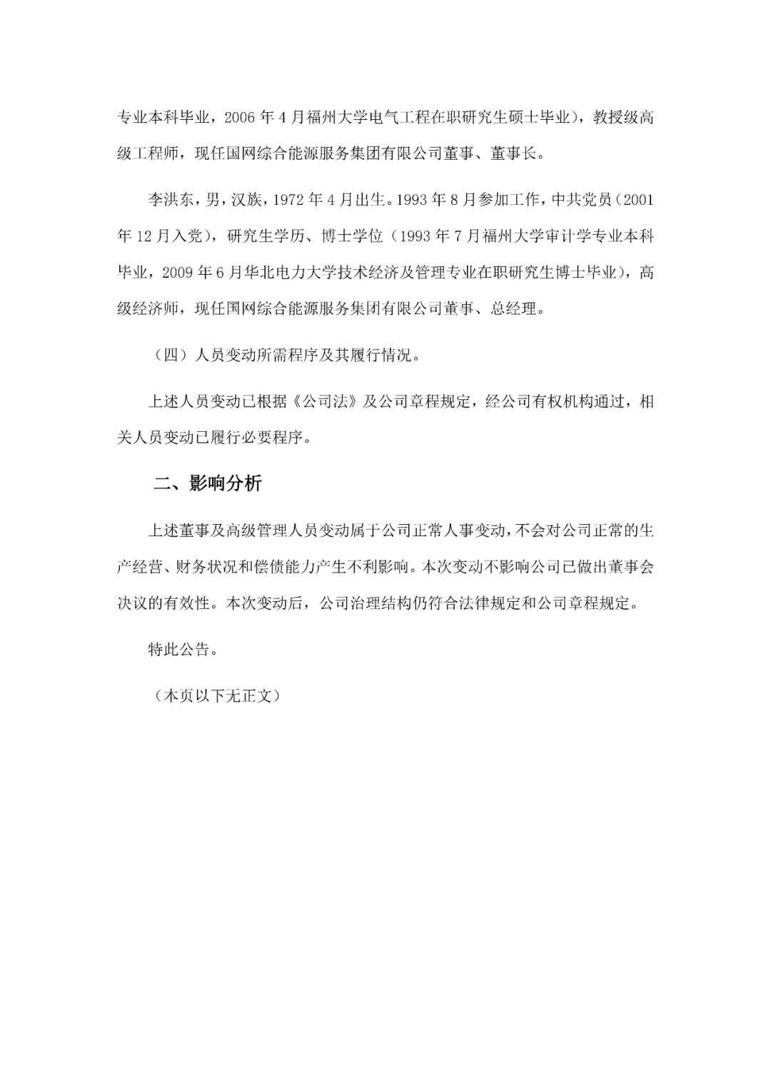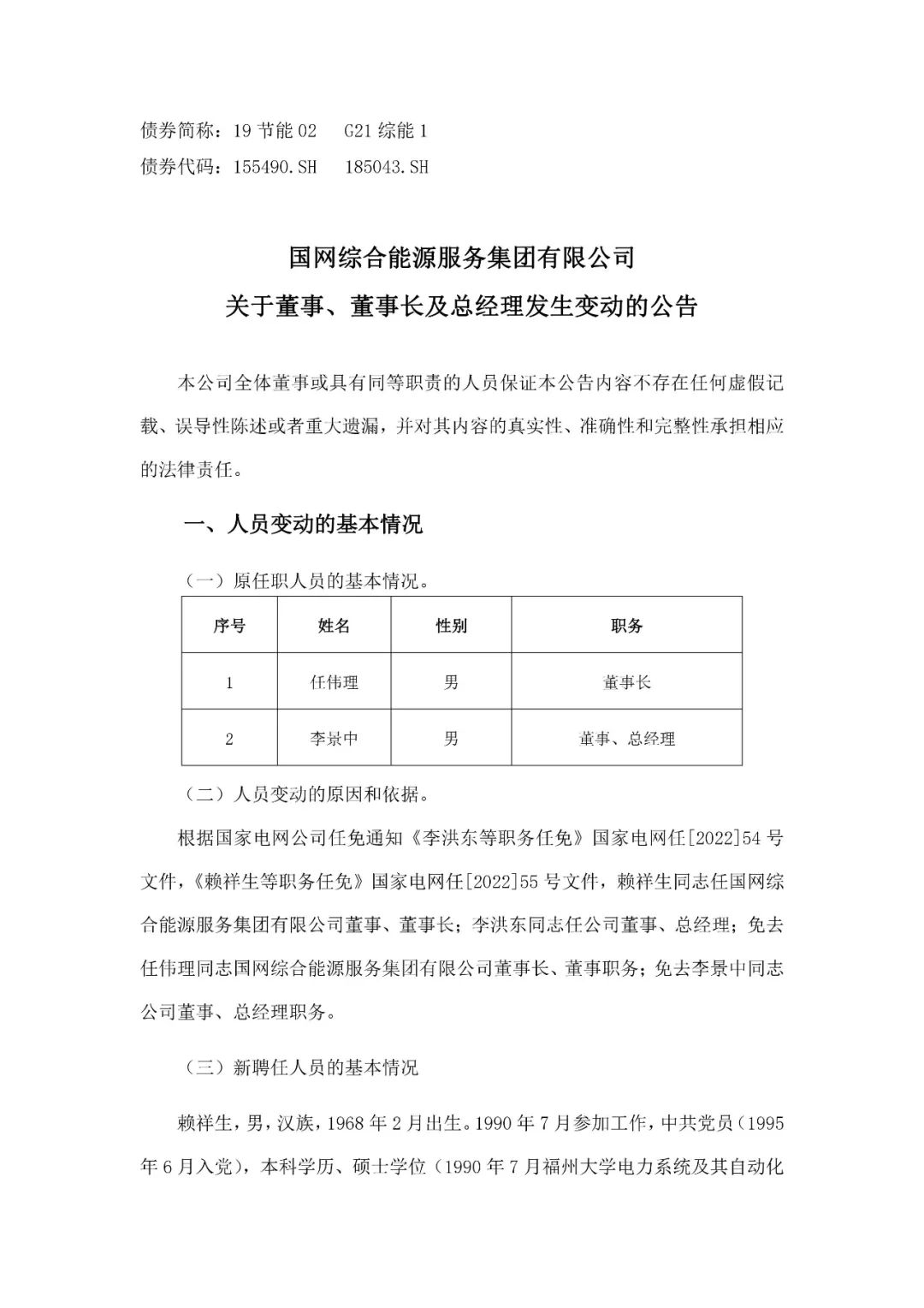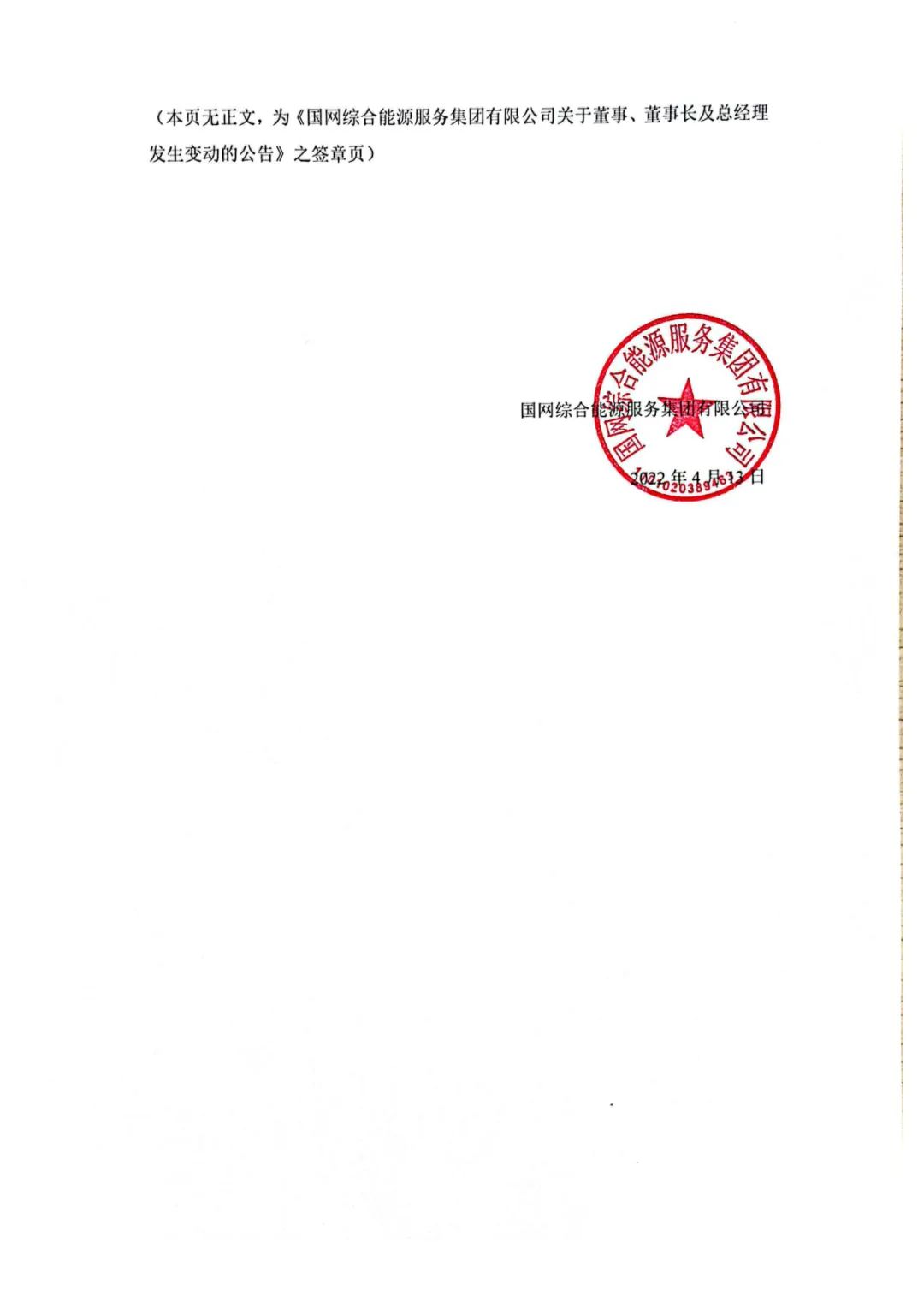 本網訊 4月13日,國網綜合能源服務集團有限公司發(fā)布關于董事、董事長及總經理發(fā)生變動的公告。公告顯示,賴祥生同志任國網綜合能源服務集團有限公司董事、董事長;李洪東同志任公司董事、總經理;免去任偉理同志國網綜合能源服務集團有限公司董事長、董事職務;免去李景中同志公司董事、總經理職務。