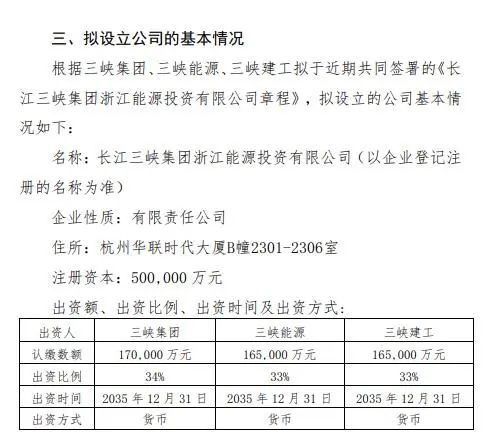 本網(wǎng)訊 4月19日,三峽集團(tuán)浙江能源投資有限公司成立,法定代表人為陳逸詩(shī),注冊(cè)資本50億元,經(jīng)營(yíng)范圍包含:股權(quán)投資;風(fēng)力發(fā)電技術(shù)服務(wù);太陽(yáng)能發(fā)電技術(shù)服務(wù);生態(tài)恢復(fù)及生態(tài)保護(hù)服務(wù)等。股權(quán)穿透顯示,該企業(yè)由中國(guó)長(zhǎng)江三峽集團(tuán)有限公司、中國(guó)三峽建工(集團(tuán))有限公司、三峽能源共同持股。