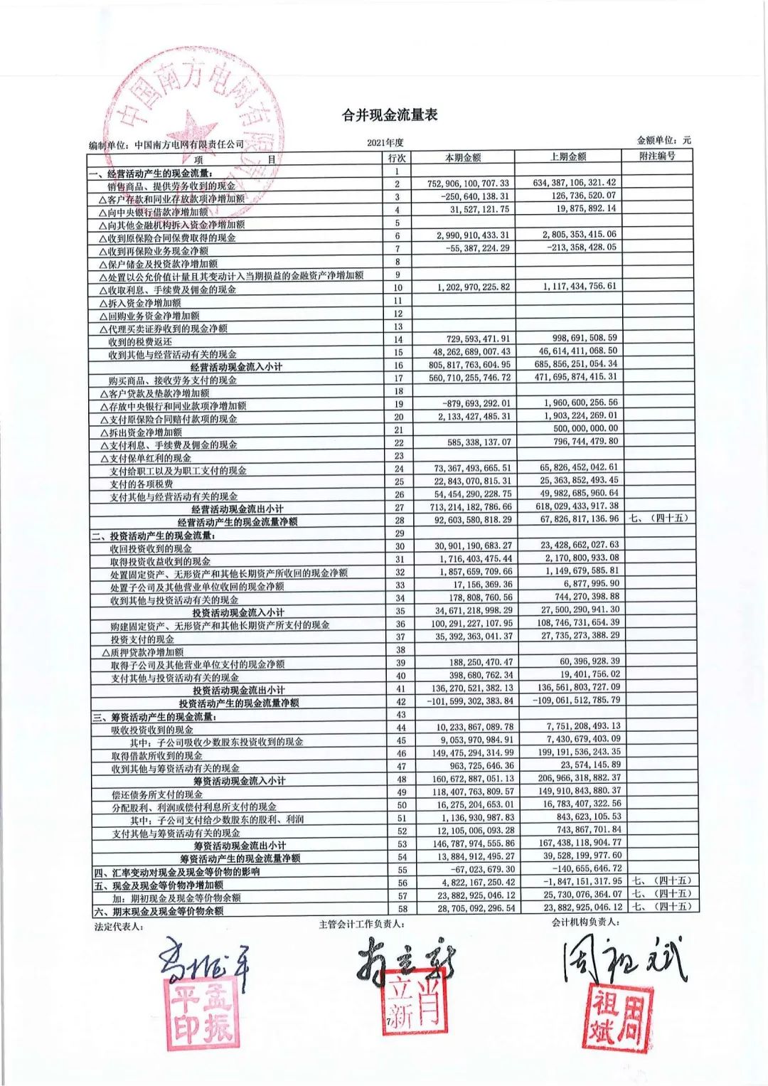 本網(wǎng)訊 4月29日,中國(guó)南方電網(wǎng)有限責(zé)任公司發(fā)布2021年財(cái)務(wù)報(bào)告。