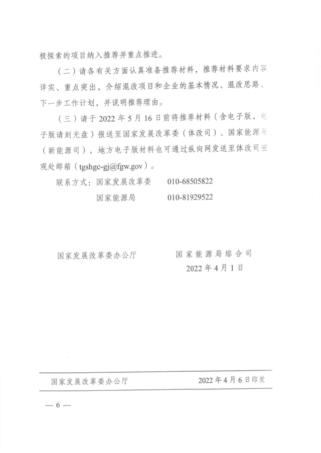 2.有關(guān)中央發(fā)電企業(yè)重點(diǎn)推薦集團(tuán)下屬企業(yè)與民企已開展或擬開展的增量混改項(xiàng)目,并與地方政府做好溝通。