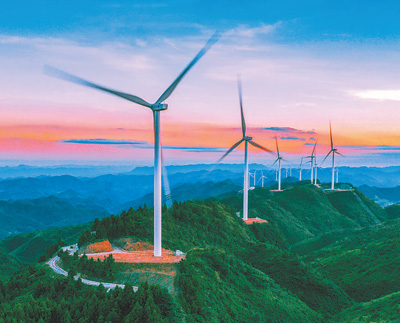 湖南湘西土家族苗族自治州龍山縣,大靈山風(fēng)力發(fā)電場(chǎng)穩(wěn)定運(yùn)行。該項(xiàng)目于2021年3月全部建成運(yùn)行。