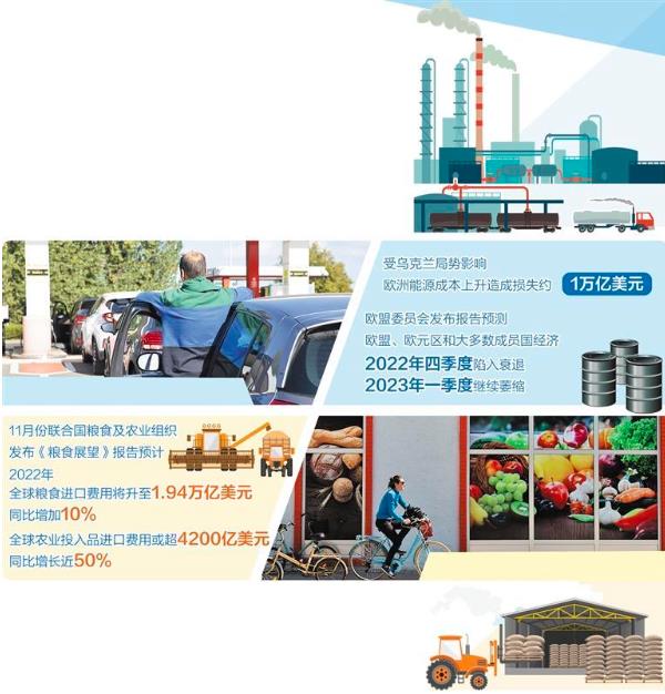 身處風(fēng)暴中心的歐洲,毫無(wú)疑問(wèn)是這場(chǎng)危機(jī)的最大埋單者。美媒報(bào)道指出,受烏克蘭局勢(shì)影響,歐洲能源成本上升造成的損失已達(dá)約1萬(wàn)億美元。能源危機(jī)帶來(lái)的種種負(fù)面影響:歐元貶值、通脹加劇、中產(chǎn)階層陷入貧困、企業(yè)背負(fù)巨額虧損……讓歐洲苦不堪言。歐盟委員會(huì)近日發(fā)布的2022年秋季經(jīng)濟(jì)預(yù)測(cè)報(bào)告稱(chēng),歐盟、歐元區(qū)和大多數(shù)成員國(guó)經(jīng)濟(jì)預(yù)計(jì)在2022年四季度陷入衰退,2023年一季度經(jīng)濟(jì)活動(dòng)將繼續(xù)萎縮。