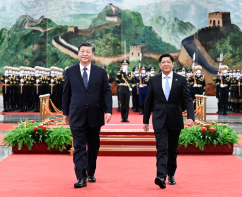 習近平歡迎馬科斯就任菲律賓總統(tǒng)后首次訪華。習近平指出,這是你首次正式訪問東盟以外國家,你也是今年中方接待的首位外國領導人。這充分體現(xiàn)了中菲關系的密切程度,也說明雙方在彼此外交格局中占有重要位置。中菲是一衣帶水的近鄰。在兩國上千年交往史上,以誠相待、守望相助始終是中菲關系主流,也是兩國人民共有的寶貴精神財富。48年前,你的父親同中國老一輩領導人洞察時局、順應大勢,共同作出中菲建交的歷史性決定。此后近半個世紀,無論國際風云和菲律賓國內政局如何變化,你和你的家族一本初衷,矢志推動中菲友好,這份情誼彌足珍貴。希望你這次訪華不僅是一次“懷舊之旅”,更是一次“開創(chuàng)之旅”。中方始終把菲律賓放在周邊外交優(yōu)先方向,堅持從戰(zhàn)略和全局高度看待中菲關系。我愿同你保持經常性戰(zhàn)略溝通,全面規(guī)劃雙邊關系下步發(fā)展,做互幫互助的好鄰居、相知相近的好親戚、合作共贏的好伙伴,為兩國人民帶來更多福祉,為地區(qū)和平穩(wěn)定貢獻更多正能量。