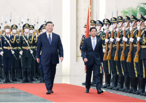 習近平強調,中菲同為亞洲發(fā)展中國家,我們的發(fā)展根植于睦鄰友好的周邊環(huán)境,根植于合作共贏的亞洲大家庭。中方愿同菲律賓及其他東盟國家聚焦合作與發(fā)展,維護好東盟在區(qū)域合作中的中心地位,推進“五大家園”建設,推動本地區(qū)擺脫冷戰(zhàn)陰影,免于陣營對抗,持續(xù)成為發(fā)展繁榮高地。中方贊賞菲方支持全球發(fā)展倡議和全球安全倡議,愿同菲方一道,加大相互支持,維護兩國和發(fā)展中國家共同利益,弘揚全人類共同價值,推動構建人類命運共同體,為完善地區(qū)和全球治理作出積極貢獻。