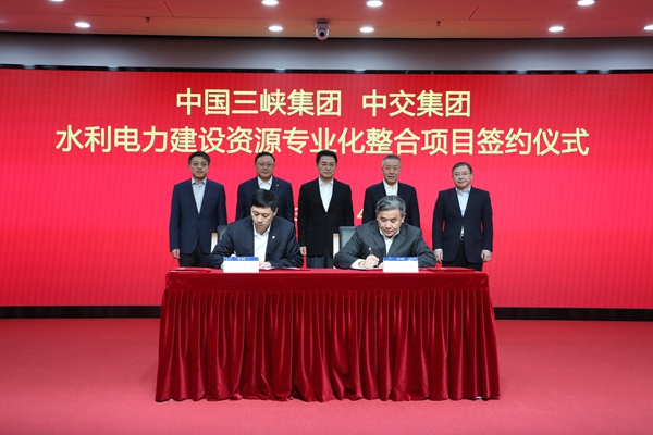 2023年1月14日,中國三峽集團(tuán)與中交集團(tuán)水利電力建設(shè)資源專業(yè)化整合項(xiàng)目簽約儀式在北京舉行,國資委黨委委員、副主任翁杰明出席儀式并講話。
