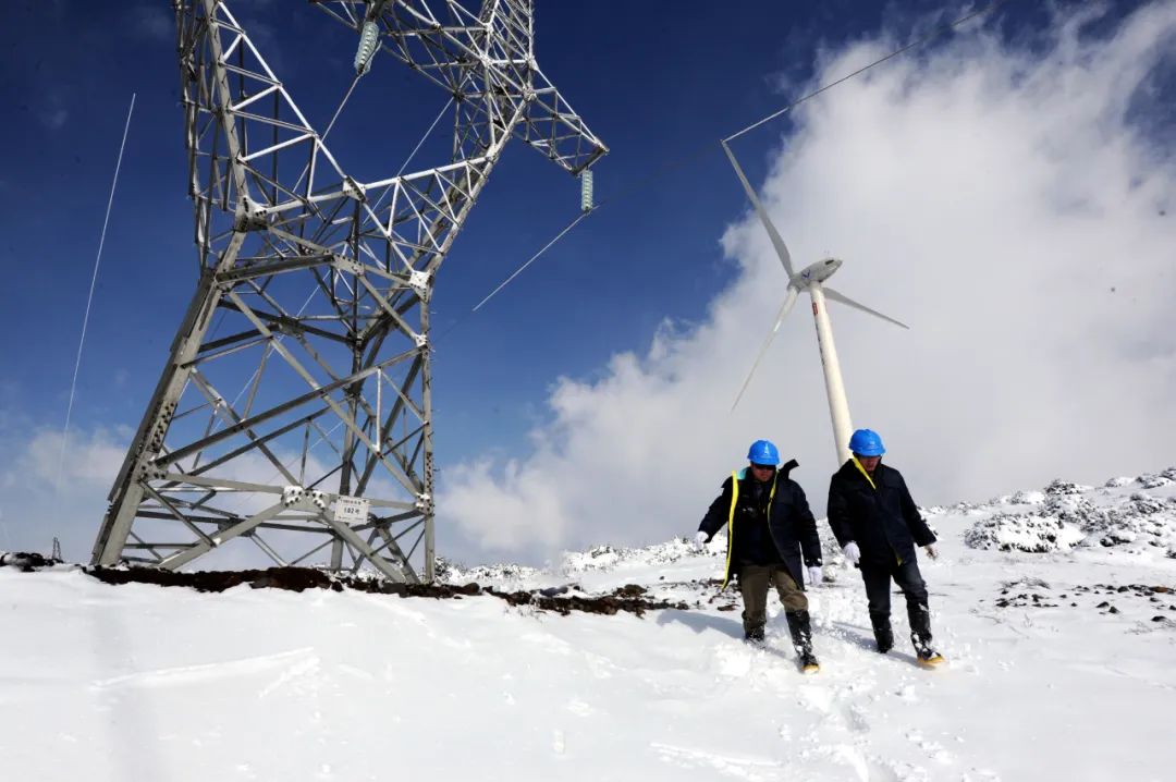 南方電網用“一張表”推進各個治理主體履職盡責。圖為南網貴州六盤水供電局員工在海拔2500多米的六盤水市四格風電場巡視檢查風力發(fā)電輸出線路。(李泵 攝)