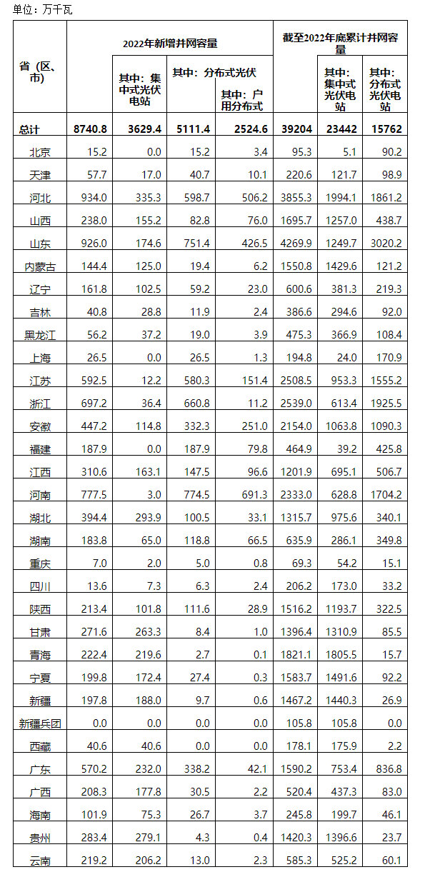 3.2022年部分省(自治區(qū)、直轄市)裝機有退運減容,截至2022年底累計并網(wǎng)容量按當年凈增并網(wǎng)容量統(tǒng)計。