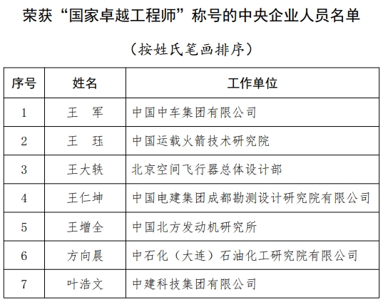 中央企業(yè)共有王軍等29名工程科技人才榮獲“國家卓越工程師”稱號,400萬噸/年煤間接液化成套技術(shù)創(chuàng)新開發(fā)及產(chǎn)業(yè)化團(tuán)隊等20個團(tuán)隊榮獲“國家卓越工程師團(tuán)隊”稱號。