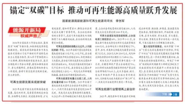 2024年是實(shí)現(xiàn)“十四五”規(guī)劃目標(biāo)任務(wù)的關(guān)鍵一年。隨著市場競爭更加充分、技術(shù)不斷進(jìn)步,特別是黨中央高度重視,新能源和可再生能源將繼續(xù)保持高速發(fā)展態(tài)勢。新的一年,要按照穩(wěn)中求進(jìn)、以進(jìn)促穩(wěn)、先立后破的工作總基調(diào),堅(jiān)持陸海并進(jìn)、集散并舉、多能互補(bǔ)、融合發(fā)展,持續(xù)推進(jìn)可再生能源高質(zhì)量躍升發(fā)展。
