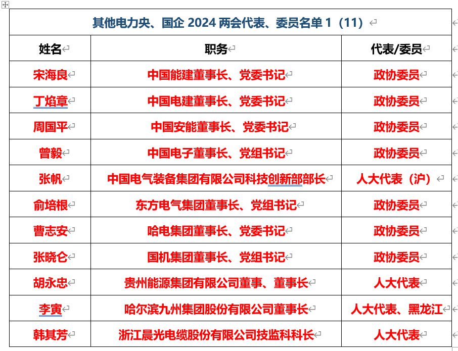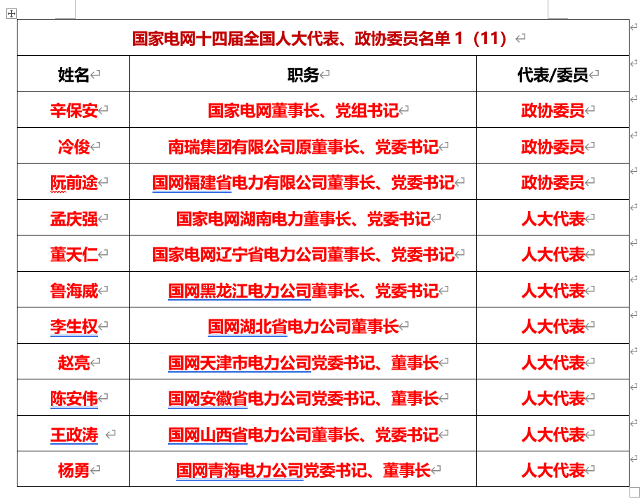 (1)孟振平南方電網(wǎng)董事長(zhǎng)、黨組書記(政協(xié)委員)
