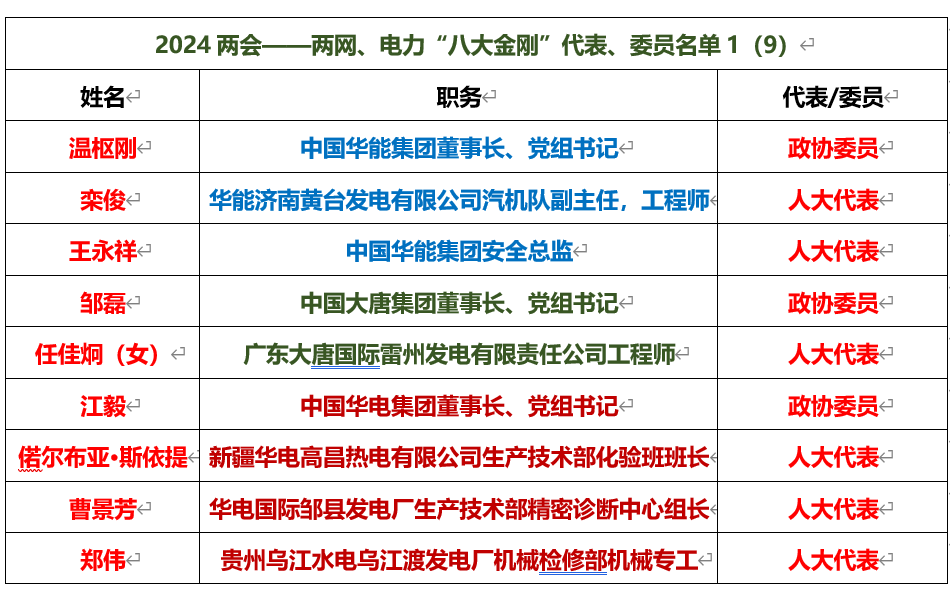 (1)溫樞剛中國(guó)華能集團(tuán)董事長(zhǎng)、黨組書記(政協(xié)委員)