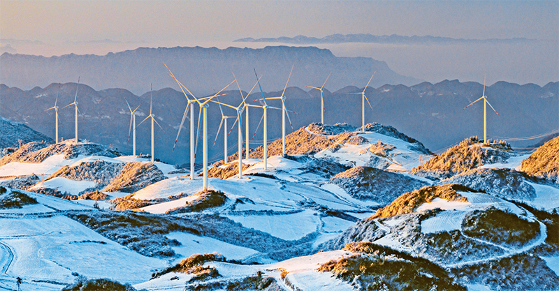我國持續(xù)推進(jìn)產(chǎn)業(yè)結(jié)構(gòu)和能源結(jié)構(gòu)調(diào)整,為能源電力綠色低碳轉(zhuǎn)型奠定了堅實基礎(chǔ)。圖為2024年1月24日拍攝的湖北省宜昌市秭歸縣云臺荒風(fēng)力發(fā)電場。 人民圖片 雷勇/攝