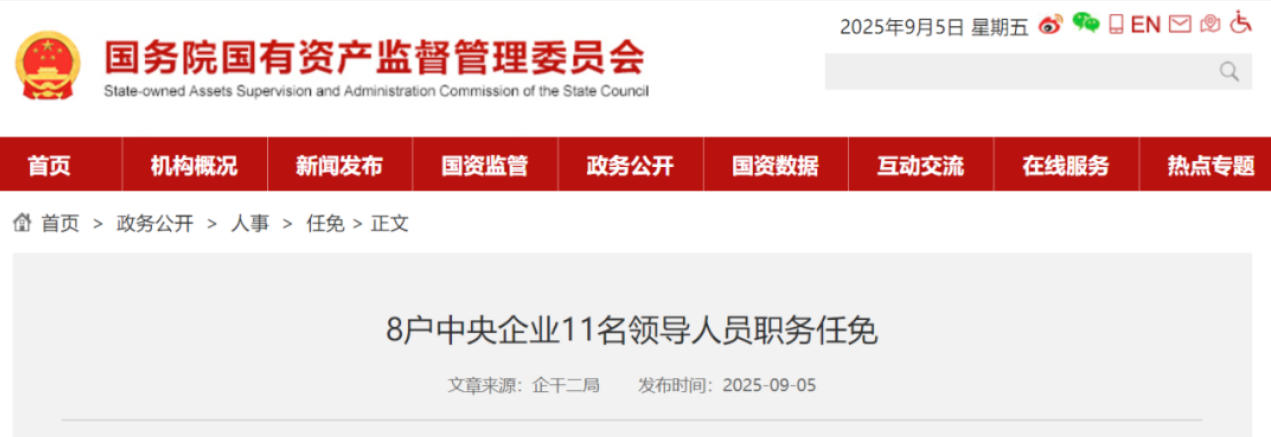據(jù)國資委網(wǎng)站9月5日消息,免去王斌的中國電力建設(shè)集團有限公司黨委副書記、黨委常委、董事職務(wù),不再擔(dān)任中國電力建設(shè)集團有限公司總經(jīng)理職務(wù),退休。