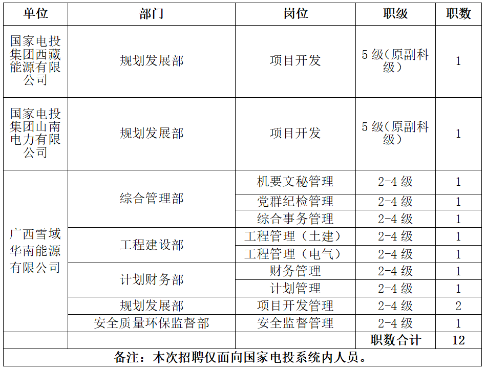 本次招聘僅面向國(guó)家電投系統(tǒng)內(nèi)人員。