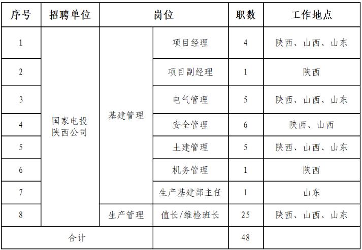 根據(jù)國家電投陜西公司發(fā)展需要,現(xiàn)面向集團公司系統(tǒng)內(nèi)外進行招聘。具體事項公告如下: