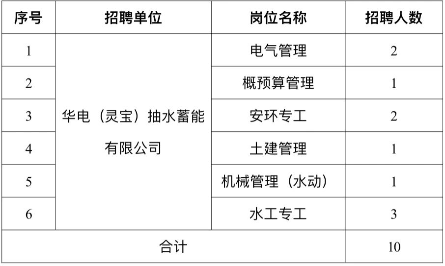 華電(靈寶)抽水蓄能有限公司于2023年12月注冊成立,屬中國華電集團(tuán)有限公司河南分公司管理,主要負(fù)責(zé)靈寶抽水蓄能電站項目的開發(fā)、建設(shè)和運營工作。該項目位于河南省三門峽市靈寶市朱陽鎮(zhèn)境內(nèi),裝機容量120萬千瓦。該項目已列入國家能源局《抽水蓄能中長期發(fā)展規(guī)劃(2021-2035年)》(國能發(fā)新能〔2021〕39號)“十四五”重點實施項目,于2024年6月取得河南省發(fā)改委核準(zhǔn)批復(fù),2025年正式開工建設(shè)。根據(jù)公司發(fā)展需要,現(xiàn)面向華電集團(tuán)系統(tǒng)內(nèi)、外公開招聘10人,有關(guān)事項公告如下: