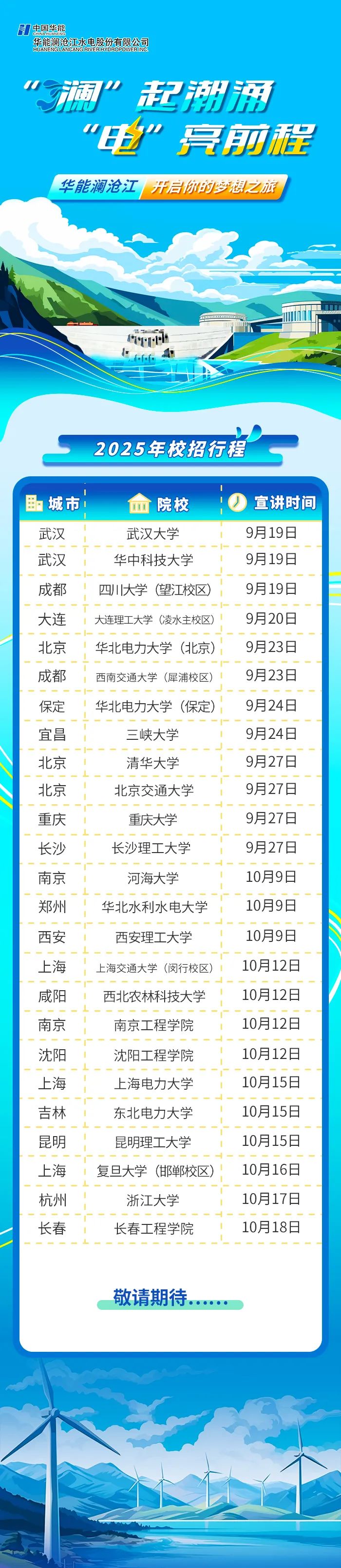 華能瀾滄江水電股份有限公司2025屆校園招聘進(jìn)校宣講行程
