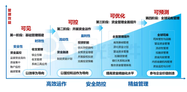 司庫管理注重強(qiáng)化營運(yùn)資金、流動性、資本結(jié)構(gòu)、利率匯率風(fēng)險和融資的管控,通過司庫體系建設(shè),企業(yè)可將資金被動管理轉(zhuǎn)變?yōu)橹鲃庸芾?、超前管理,?shí)現(xiàn)集團(tuán)各類金融資源可視、可控和增值,成為集團(tuán)戰(zhàn)略落地的堅實(shí)保障。