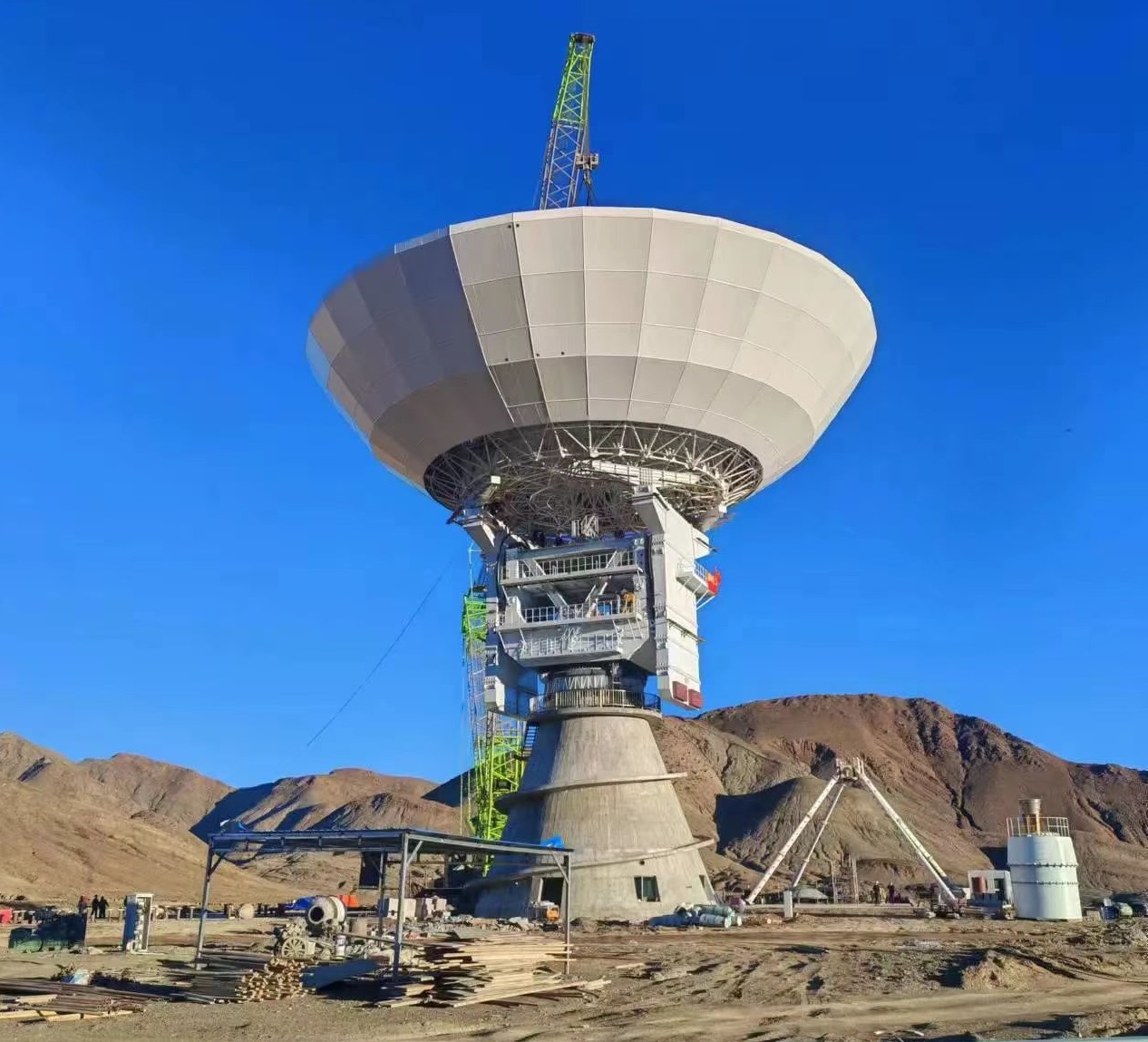 近日,由中國電科與中國科學(xué)院上海天文臺聯(lián)合研制的日喀則40米射電望遠鏡,在西藏自治區(qū)日喀則市順利完成天線系統(tǒng)主反射體的吊裝,標志著天線機械架設(shè)初步完成,為后續(xù)望遠鏡電氣調(diào)試等聯(lián)調(diào)奠定堅實基礎(chǔ)。