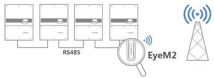 逆變器標(biāo)配RS485通訊接口,通過通訊線纜“手拉手”式連接,只需給其中一臺(tái)逆變器配置EyeM2無線通訊模塊,由其集中上傳所有數(shù)據(jù),不僅讓組網(wǎng)更簡(jiǎn)單,還能夠節(jié)省通訊模塊及流量費(fèi)用;同時(shí)通過陽光云APP掃描通訊模塊二維碼接入智慧能源管理平臺(tái),一鍵掃碼建站,大大提升建站效率。