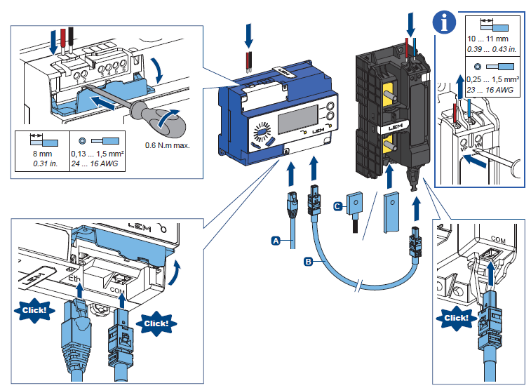 萊姆智能電表可裝在直流充電樁靠近輸出槍側(cè),或者充電終端內(nèi)。為應(yīng)對(duì)德國(guó)Eichrecht法規(guī)對(duì)于線損補(bǔ)償?shù)染_計(jì)量的要求,我們建議為每一條充電回路配備單獨(dú)的智能電表。