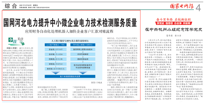 引言:日前,國網(wǎng)河北電力攜手遠光軟件開展財務(wù)智能化升級探索,通過在與中小微企業(yè)客戶往來款項對賬及入賬業(yè)務(wù)環(huán)節(jié)中引入財務(wù)自動化處理機器人(RPA),大幅提升了業(yè)務(wù)處理效率,縮短了客戶獲得報告和發(fā)票的時間,提升了客戶的滿意度,同時也強化了國網(wǎng)河北電力的財務(wù)智能化、精益化管理水平。