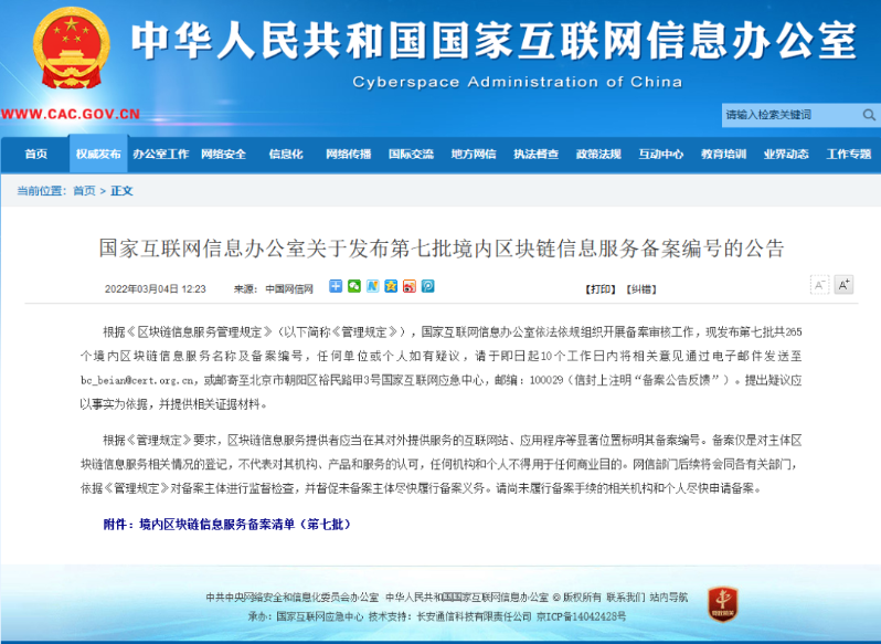 3月4日,國家互聯(lián)網(wǎng)信息辦公室(簡稱:國家網(wǎng)信辦)發(fā)布了《關于發(fā)布第七批境內區(qū)塊鏈信息服務備案編號的公告》,遠光軟件兩款區(qū)塊鏈產(chǎn)品成功通過備案,為國內已獲得國家區(qū)塊鏈信息服務備案數(shù)最多的企業(yè)之一。
