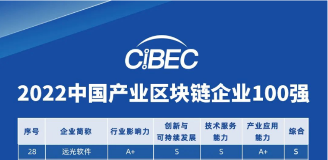 大會(huì)根據(jù)該調(diào)研結(jié)果發(fā)布了“2022中國(guó)產(chǎn)業(yè)區(qū)塊鏈企業(yè)100強(qiáng)”榜單。榜單評(píng)選基于調(diào)研企業(yè)2021年度全年相關(guān)數(shù)據(jù)統(tǒng)計(jì)分析與核查比對(duì)得出,評(píng)選指標(biāo)由行業(yè)影響力、創(chuàng)新與可持續(xù)發(fā)展、技術(shù)服務(wù)能力、產(chǎn)業(yè)應(yīng)用能力四個(gè)一級(jí)指標(biāo),19個(gè)細(xì)化統(tǒng)計(jì)指標(biāo)構(gòu)成。遠(yuǎn)光軟件從眾多候選企業(yè)中脫穎而出,以S級(jí)評(píng)分入選百?gòu)?qiáng)企業(yè)前列。