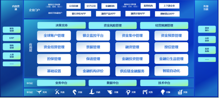 陳麗華介紹,遠(yuǎn)光全球司庫管理系統(tǒng)采用“云原生”架構(gòu),按照“全棧國產(chǎn)化、組件式接入、全業(yè)務(wù)協(xié)同、嵌入型分析、服務(wù)化運(yùn)營”的設(shè)計(jì)要求,借助互聯(lián)網(wǎng)、物聯(lián)網(wǎng)、大數(shù)據(jù)、人工智能等創(chuàng)新技術(shù),內(nèi)部貫通業(yè)財(cái)一體,外部互聯(lián)開放共享,以服務(wù)戰(zhàn)略、支撐業(yè)務(wù)、創(chuàng)造價(jià)值為導(dǎo)向,助力集團(tuán)企業(yè)搭建“賬戶管理中心、資金結(jié)算中心、資源調(diào)配中心、風(fēng)險(xiǎn)管控中心”四心合一的全球司庫管理體系,支撐十六大類業(yè)務(wù)應(yīng)用。全面融合業(yè)務(wù)側(cè)至財(cái)務(wù)側(cè),整合上下游客戶資源,與財(cái)務(wù)公司、商業(yè)銀行連通,構(gòu)建集團(tuán)企業(yè)司庫管理價(jià)值鏈。