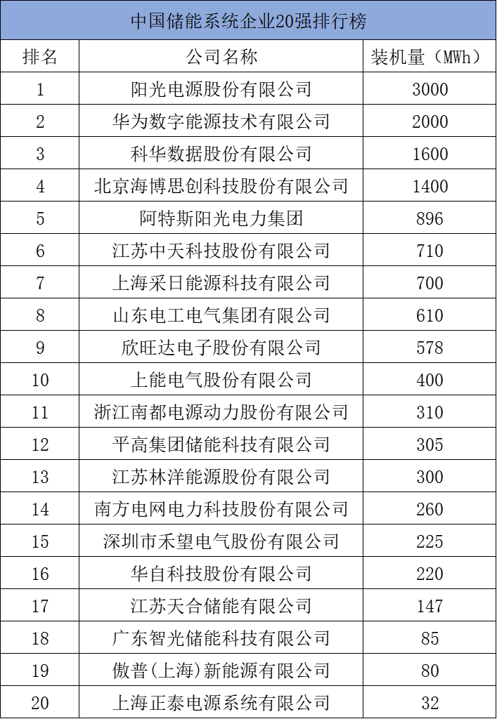 陽(yáng)光電源股份有限公司以銷(xiāo)量3000MWh的成績(jī)依舊穩(wěn)居第一,華為數(shù)字能源技術(shù)有限公司和科華數(shù)據(jù)股份有限公司位居第二和第三。