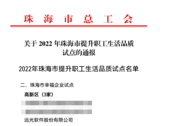 本次入選珠海市幸福企業(yè)試點(diǎn)單位是對(duì)遠(yuǎn)光軟件做好職工服務(wù)工作的肯定。按照試點(diǎn)任務(wù)要求,下一步,遠(yuǎn)光軟件將從改善職工生活條件、健全完善職工困難幫扶機(jī)制、依法保障職工享受福利待遇、豐富服務(wù)職工供給資源、建立職工健康服務(wù)體系、加強(qiáng)職工人文關(guān)懷、推動(dòng)勞動(dòng)關(guān)系和諧穩(wěn)定等方面,全力塑造職工生活幸福發(fā)展環(huán)境,創(chuàng)建職工生活幸福型企業(yè),更好滿(mǎn)足廣大職工群眾對(duì)美好生活的需要。