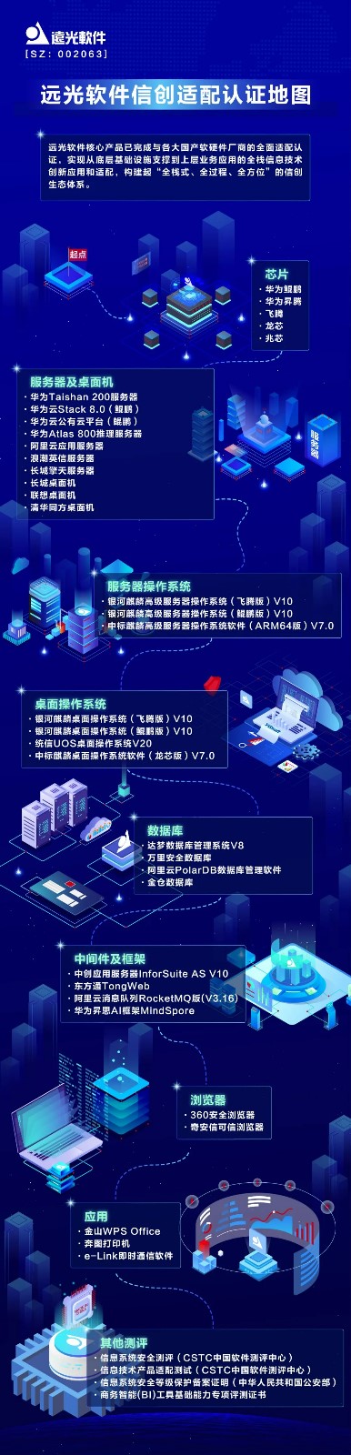 作為民族軟件品牌,遠(yuǎn)光軟件始終堅(jiān)持“自主可控軟件產(chǎn)品”發(fā)展方向、服務(wù)“安全可靠應(yīng)用替代”國(guó)家戰(zhàn)略的根本定位?;谌珬W灾骺煽考夹g(shù)路線(xiàn),遠(yuǎn)光軟件遵循“以自主可靠的工具研發(fā)自主可靠的系統(tǒng),運(yùn)行在自主可靠的基礎(chǔ)設(shè)施之上”的理念,實(shí)現(xiàn)從底層基礎(chǔ)設(shè)施支撐到上層業(yè)務(wù)應(yīng)用的全棧信息技術(shù)創(chuàng)新應(yīng)用和適配,構(gòu)建起“全棧式、全過(guò)程、全方位”的信創(chuàng)生態(tài)體系,全方位兼容適配國(guó)產(chǎn)核心軟硬件產(chǎn)品,助力營(yíng)造開(kāi)放、健康、安全的數(shù)字生態(tài)。