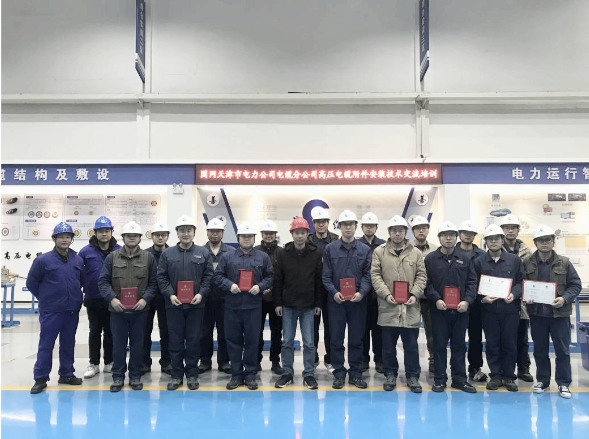 其中,2023年組織國網(wǎng)客戶(包括國網(wǎng)天津市電力公司電纜分公司、國網(wǎng)石家莊供電公司、國網(wǎng)濟(jì)南供電公司、國網(wǎng)南昌供電公司、國網(wǎng)保定供電公司、國網(wǎng)鄭州供電公司電纜運(yùn)檢中心、國網(wǎng)長沙供電公司電纜檢修公司、國網(wǎng)四川省電力公司成都供電公司等)來司開展高壓電纜附件安裝培訓(xùn)共計(jì)9場,參訓(xùn)學(xué)員48人,累計(jì)培訓(xùn)學(xué)時(shí)584小時(shí);受國網(wǎng)客戶單位邀請開展各類技能比武、安裝技能提升培訓(xùn)指導(dǎo)服務(wù)共計(jì)12次,累計(jì)培訓(xùn)、指導(dǎo)課時(shí)418小時(shí)。2024年2月底到3月初,為國網(wǎng)天津市電力公司電纜分公司的15名青年職工提供為期5天的專業(yè)培訓(xùn)。