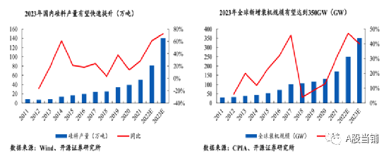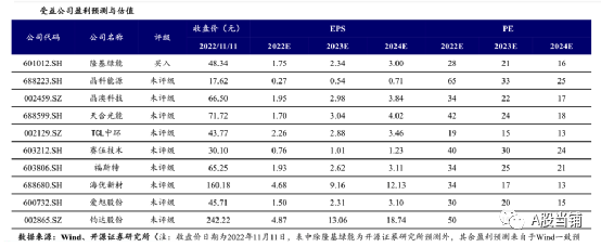 2023年硅料瓶頸解決,價格回落有望向下游讓利,關注硅料下游盈利有望增厚。受益技術變化,TOPCon放量,相關企業(yè)盈利有望增長,相關輔材,比如POE粒子,受益于供需緊張有望量價齊升。