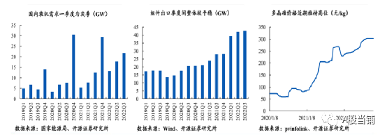 1、國內一季度往往為需求淡季,環(huán)比往往會有一定幅度下滑,考慮部分年底并網量第二年一季度安裝以及1.2容配比,預計2023年一季度組件實際需求不超過40GW。