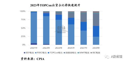 由于TOPCon電池經濟性更強,一體化組件龍頭企業(yè)及專業(yè)化電池企業(yè)紛紛快速擴產,并有望于2023年實現出貨量快速增長。據CPIA預測,2023年TOPCon出貨占比將實現翻倍增長。預計2023年全行業(yè)TOPCon電池組件出貨將達到100-150GW。