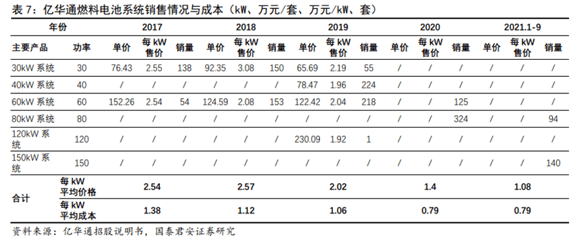 電堆的降本之路:據GGII統(tǒng)計,電堆近年的降價幅度約為每年30%。與此同時,氫燃料電池系統(tǒng)的平均降價幅度約為每年15%。2021年,批量采購的電堆價格已降至2000元/kW以下,這也使得燃料電池系統(tǒng)價格低于5000元/kW成為可能。