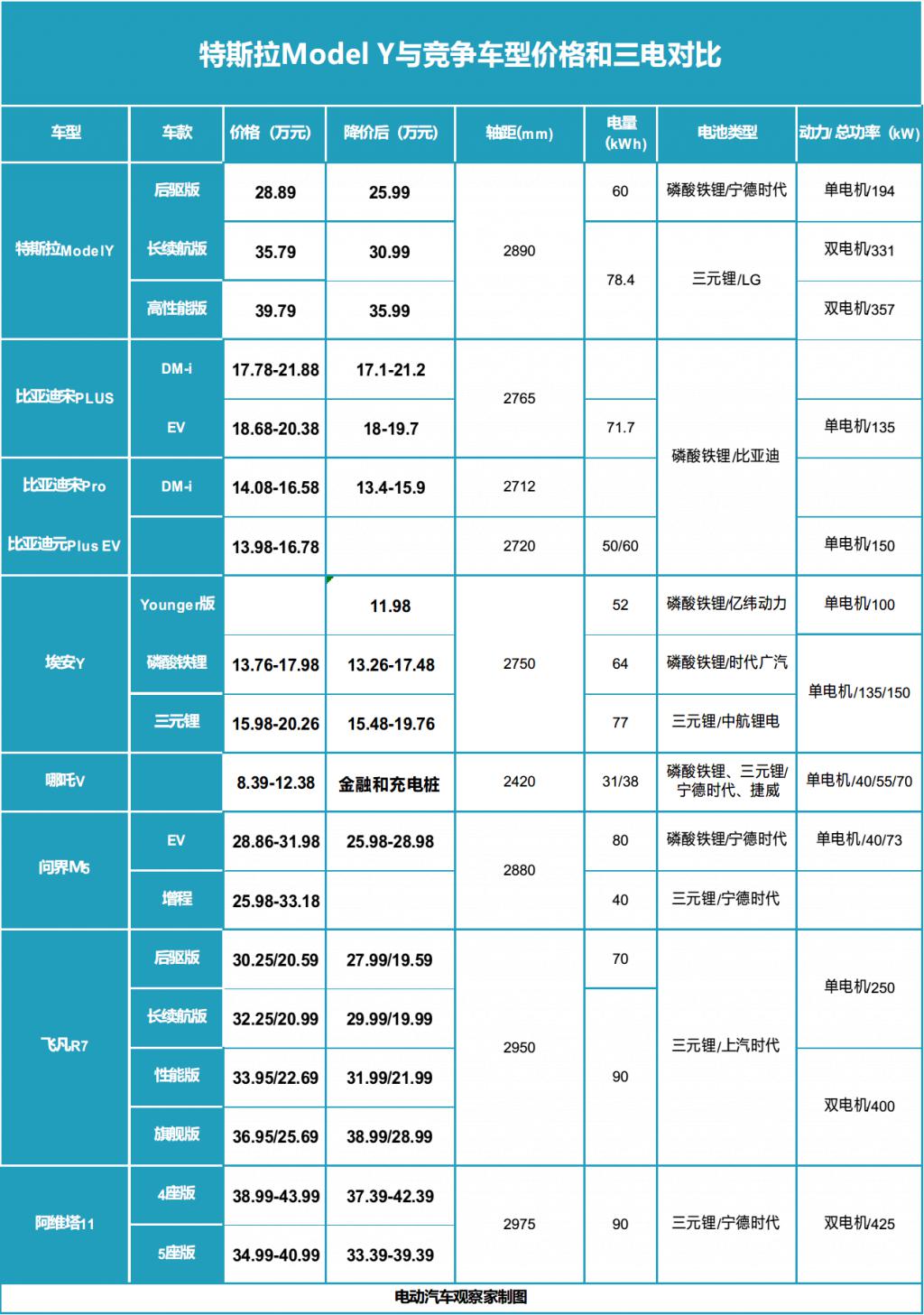 緊湊型的比亞迪宋 / 元新能源和埃安 Y 并不是中型的 ModelY 的直接競品。但當(dāng)新能源 SUV 市場的定價(jià)車型拿出新價(jià)格時(shí),盡管中間存在 10 萬元的價(jià)差,還是必須 " 跟牌 ":