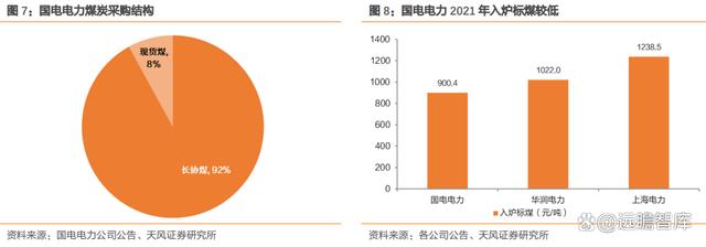 此外,上市公司國(guó)電電力充分利用集團(tuán)優(yōu)勢(shì),長(zhǎng)協(xié)煤占比高,有效緩解燃料成本壓力。公司充分利用國(guó)家能源集團(tuán)“煤電路港航”一體化產(chǎn)業(yè)協(xié)同優(yōu)勢(shì),提升內(nèi)部?jī)?yōu)質(zhì)長(zhǎng)協(xié)煤炭資源比例及兌現(xiàn)率。2021 年,公司共采購(gòu)煤炭 1.91 億噸,其中長(zhǎng)協(xié)煤總量 1.75 億噸,占比92%。公司把握采購(gòu)結(jié)構(gòu)和節(jié)奏,優(yōu)化采購(gòu)煤種和熱值,深入開展精細(xì)化配煤摻燒;在燃料智能化、智能發(fā)電、電力安全生產(chǎn)標(biāo)準(zhǔn)化等方面,開展了很多前沿探索,積累了很多成果經(jīng)驗(yàn),管控水平行業(yè)領(lǐng)先。從 2021 年入爐標(biāo)煤來看,公司僅為 900.4 元/噸,明顯處于行業(yè)較低水平。